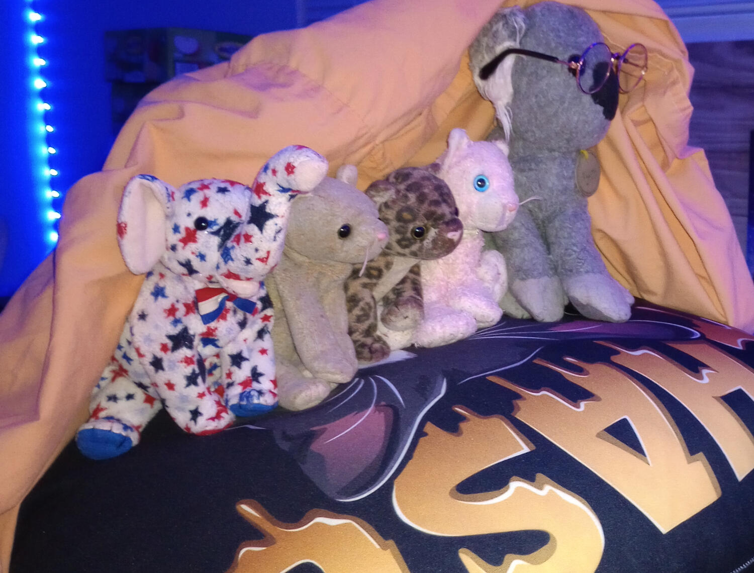 Every Friday night, Carly (Pink cat, blue eyes), Mary (Koala, Glasses), Pax (Beige cat, pink nose), Snacker (Leopard Cat), and Starry (Elephant) tune into Damon and Stink's Smoke N Scan Livestream, affectionately known here as "Girls Night".Smoke N Scan initiates impromptu Livestreams throughout the week, typically when a police pursuit is happening, and so there are several opportunities to catch a glimpse of Stinks the cat.